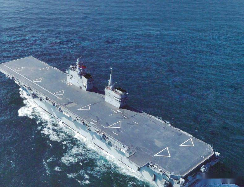 一切要从076这艘船本身说起。 它不像人们熟悉的美国“美国”级两栖攻击舰,更像是一艘“缩水版航母”。 它有一条从舰艏延伸至舰艉侧方的、异常平整宽阔的全通飞行甲板。 你几乎看不到传统两栖舰上那些杂乱的起重设备和突出的舰桥。
