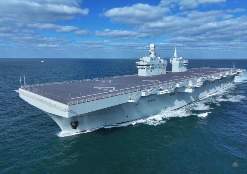 两个简洁的、带隐身棱角的舰岛一前一后矗立着,让整个甲板看起来就像一个专门为飞机准备的海上机场。